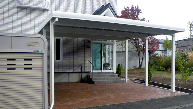 レンガ舗装した駐車スペースの上にカーポートを設置しました。