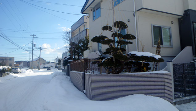 一階天井の高さまである植木に冬囲いを施しました。